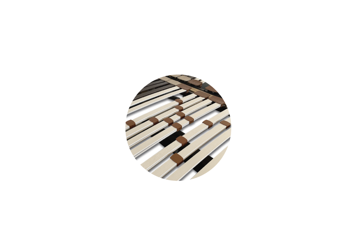 Situadas en la zona central reforzada con 6 grupos de 2 láminas del somier, ofrece un óptimo confort gracias a sus zonas de descanso