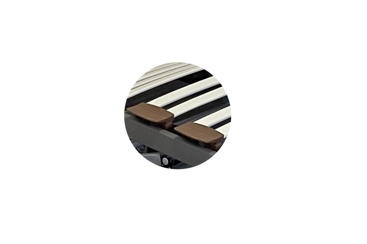 Lecho de descanso con sistema multiláminas recubiertas de polipropileno sobre tacos SBS, con regulación de firmeza en la zona lumbar. En modelo articulado eléctrico, Mando RF sin cables con motor alemán silencioso de alta fiabilidad y durabilidad.