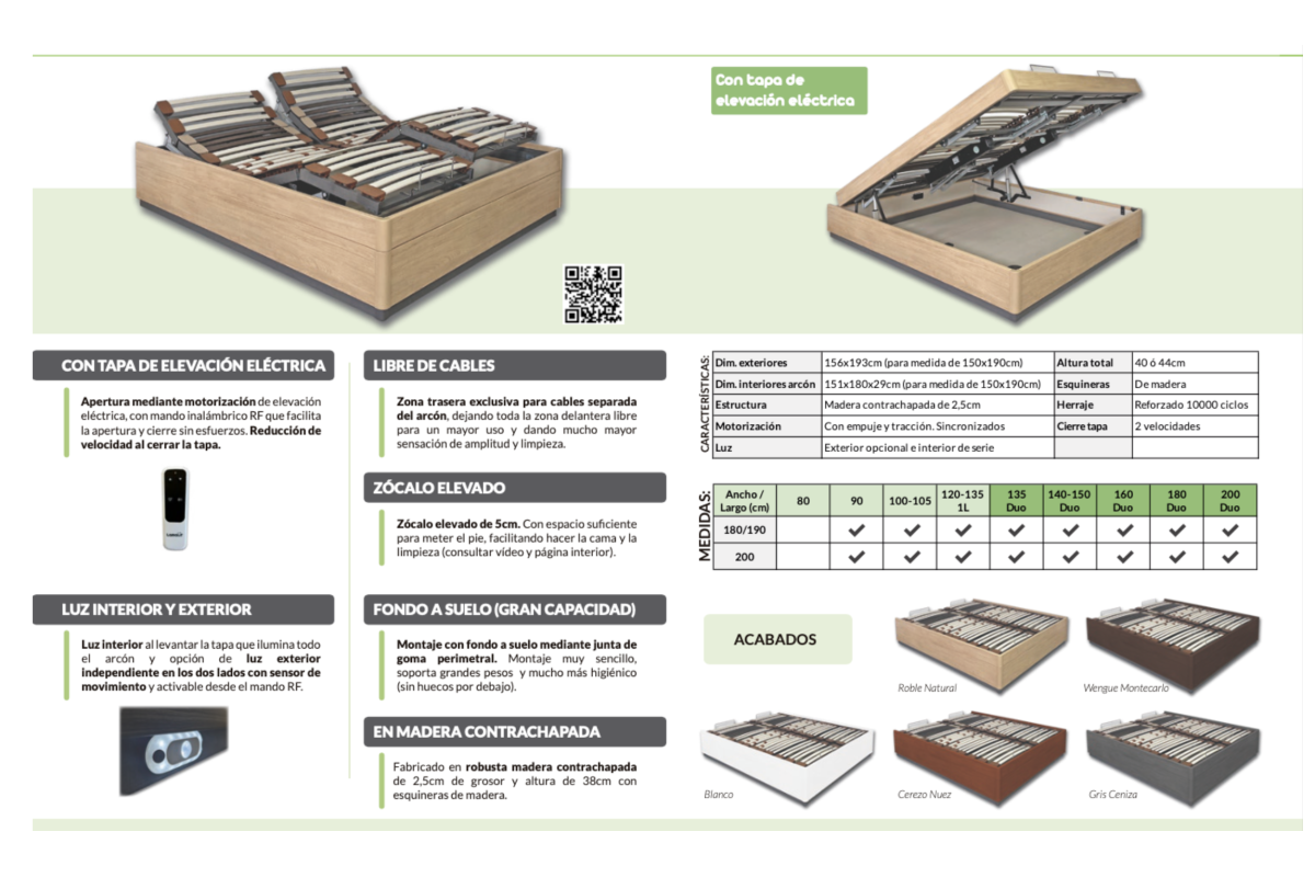 Mando RF | Tacos SBS | Regulación lumbar bilama | Lecho multiláminas