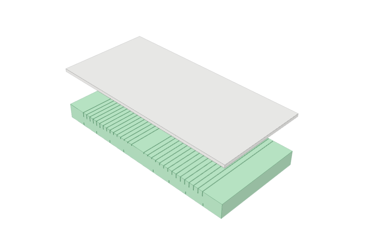 - 3 cm de viscoelástica con memoria (40 kg/m³) para una mejor adaptación al cuerpo.