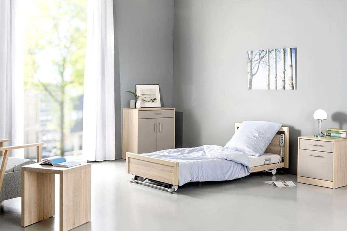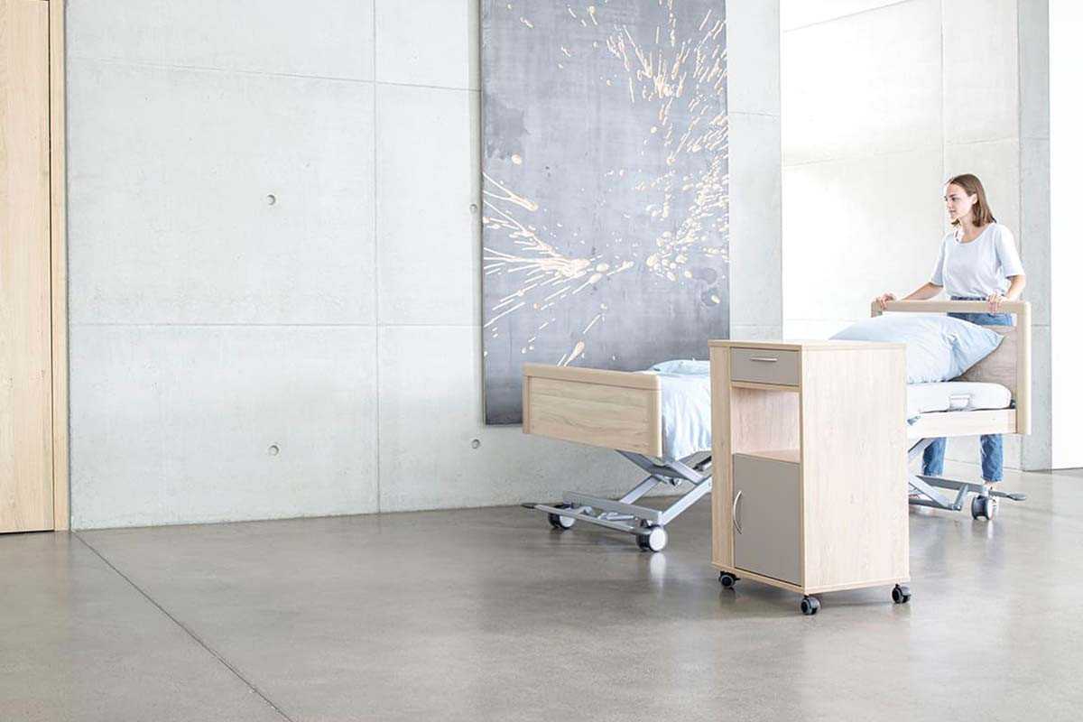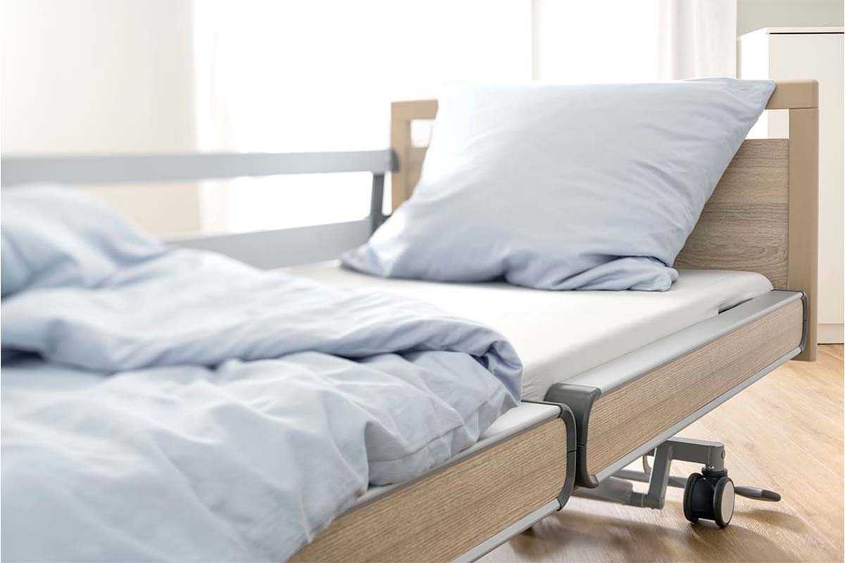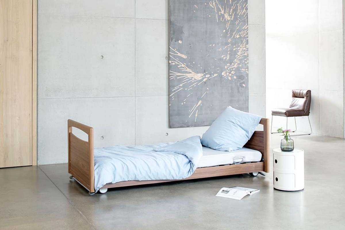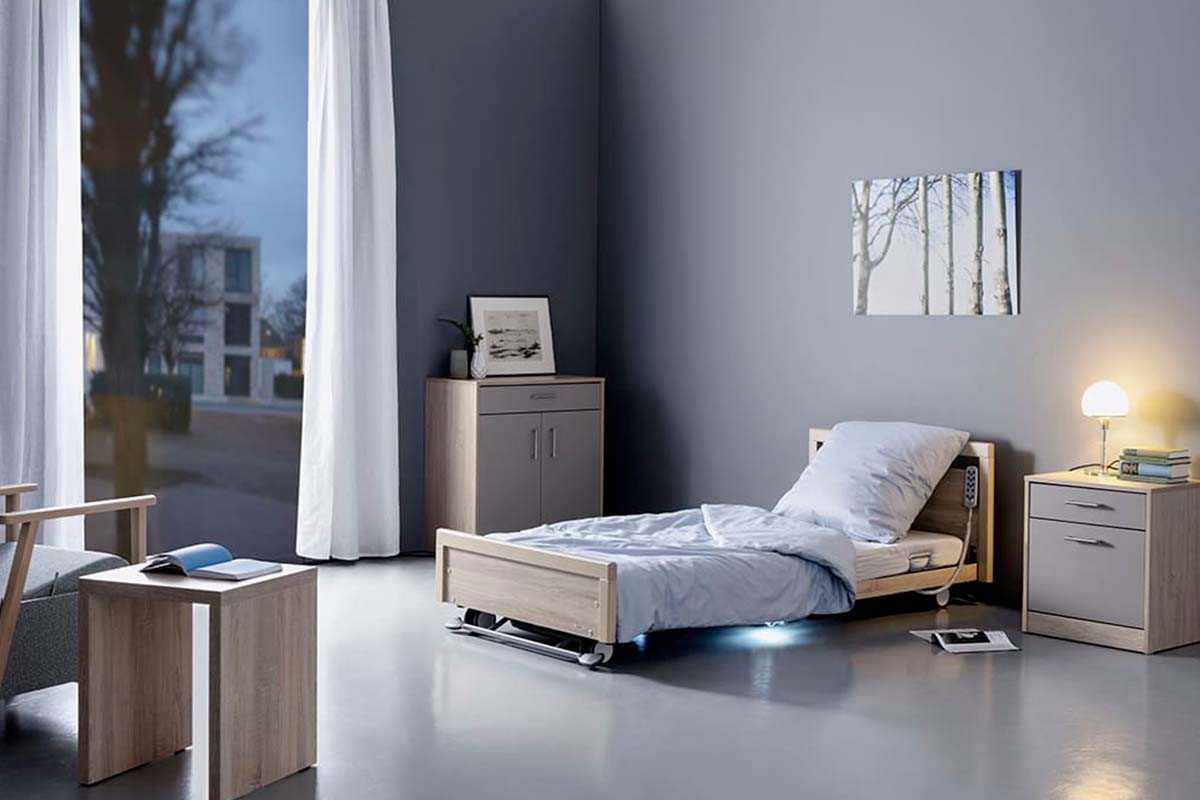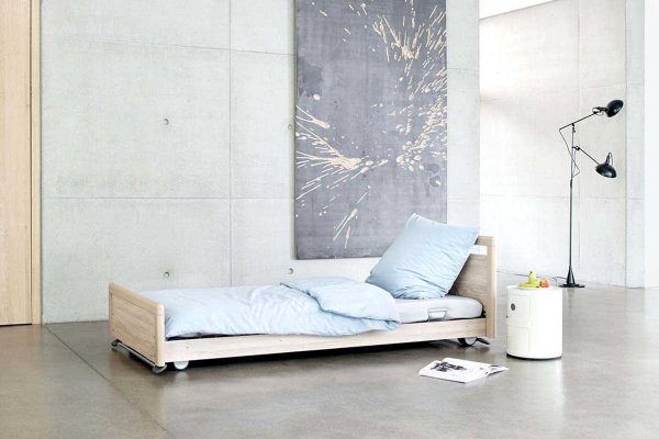 Cama Floorline baja, de belleza y ergonomía optimizada para el paciente y cuidador.