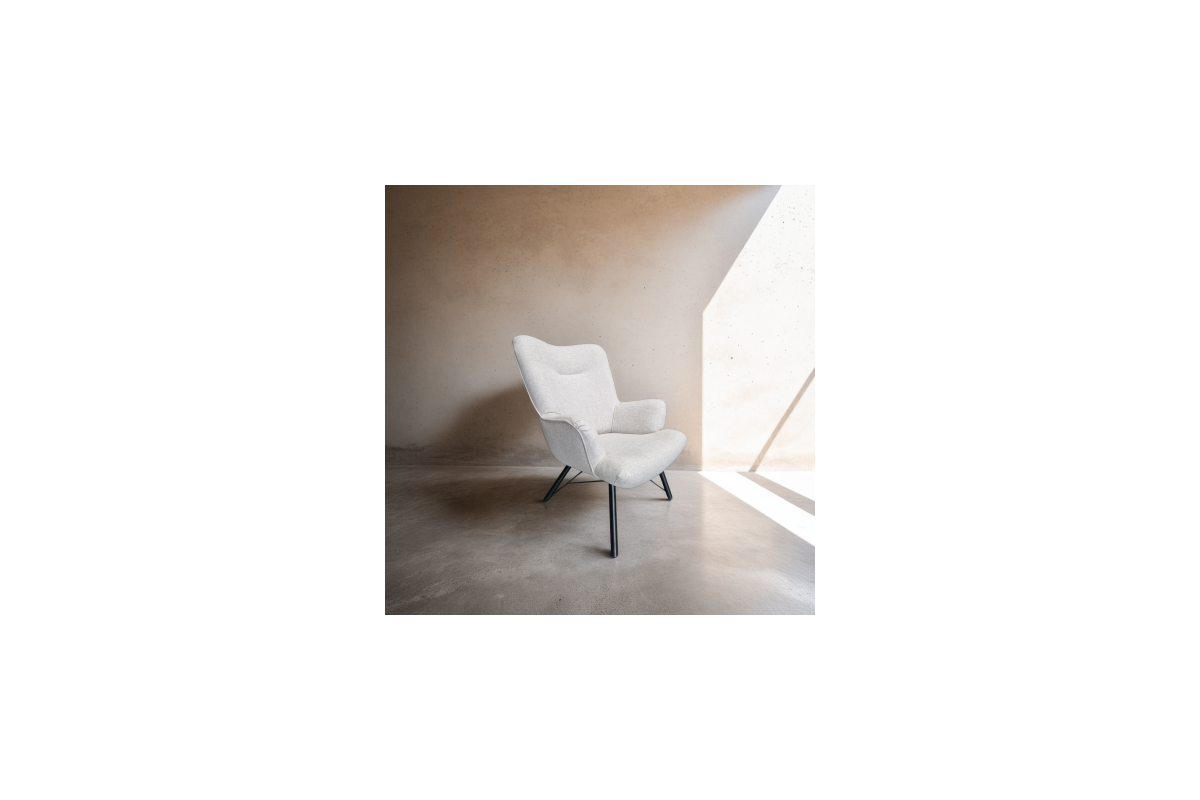 Sillón elegante y cómodo con respaldo acolchado y base metálica. Combinable con reposapiés. Ideal para residencias, clínicas y zonas de descanso.