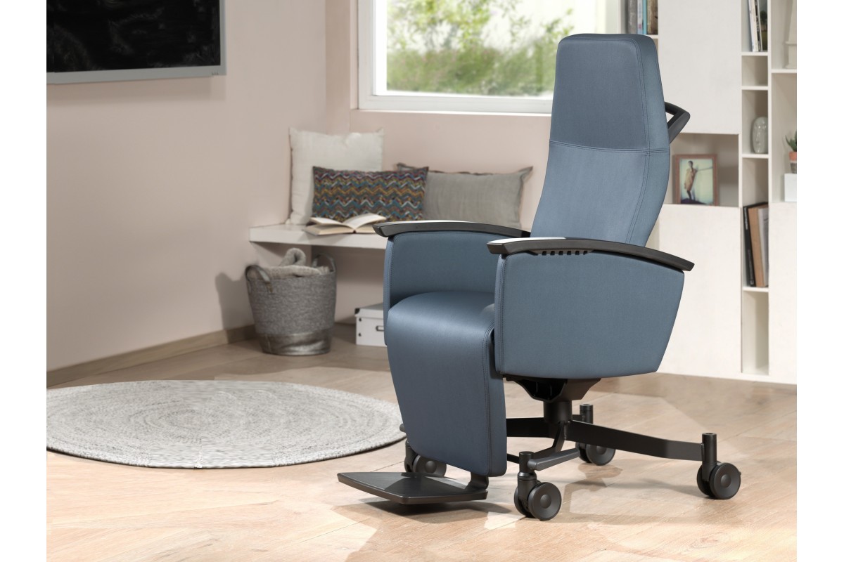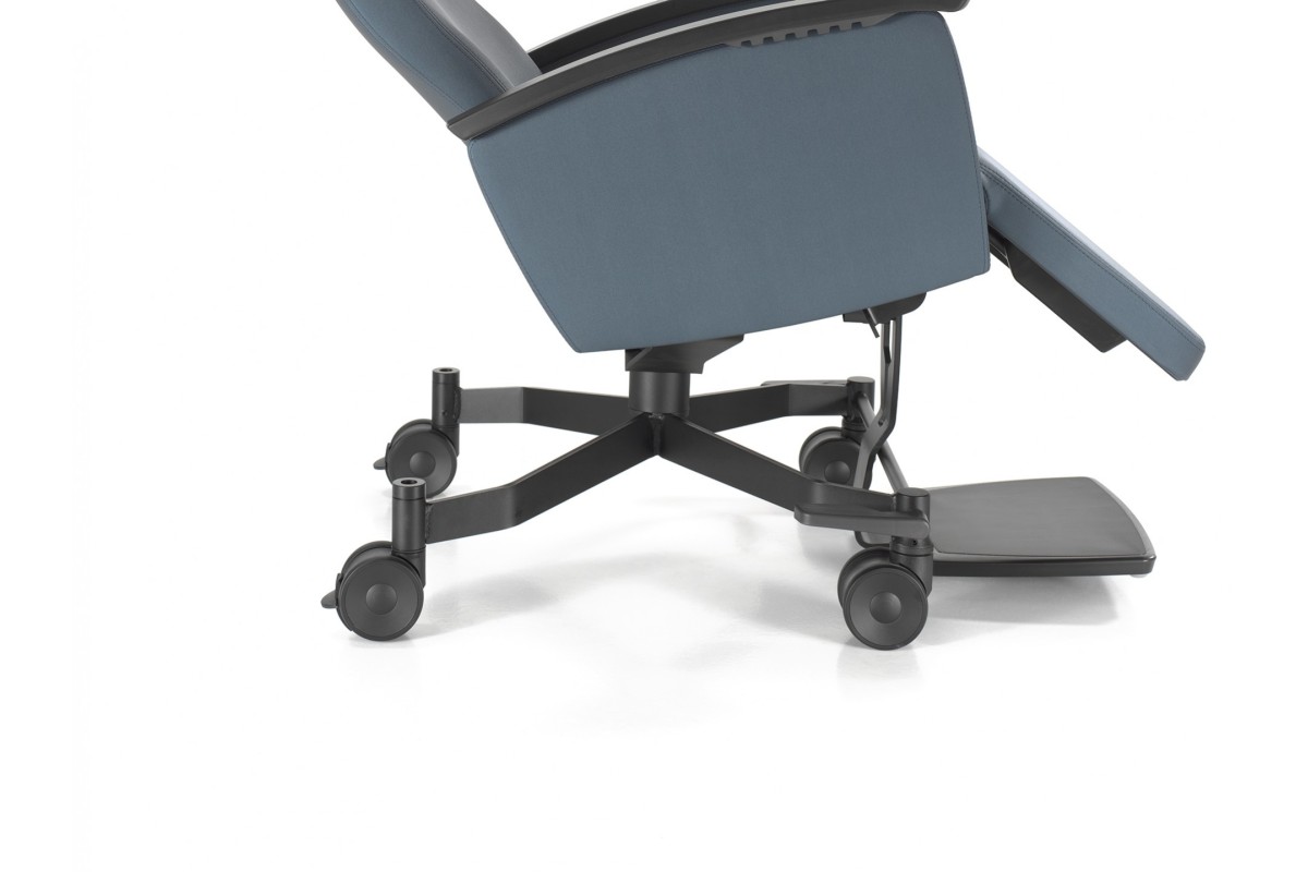 Dos actuadores se encargan de que el respaldo, el asiento y el reposapiernas se inclinen hasta una posición de gravedad cero (*). El respaldo y el asiento son ajustables individualmente. La silla puede accionarse mediante un Mando o un mando integrado (cuando se opta por laterales tapizados).