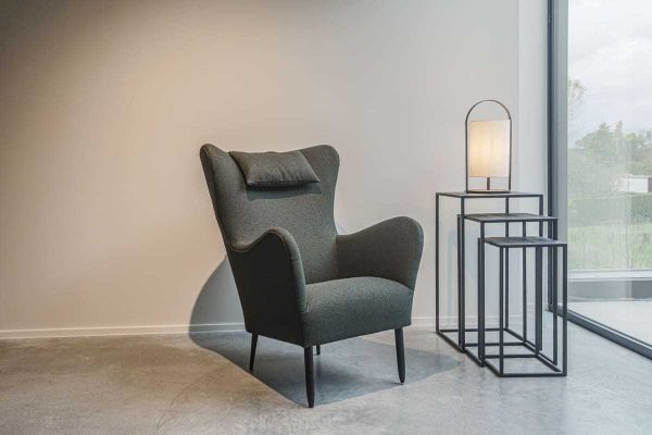 Espuma moldeada de alta elasticidad densidad hrs 43m kg/m3. Piezas de soporte de haya, muelles en zigzag recubiertos de una capa de poliéster disponible en infinidad de colores y tejidos diseñado y desarrollado en Bélgica.