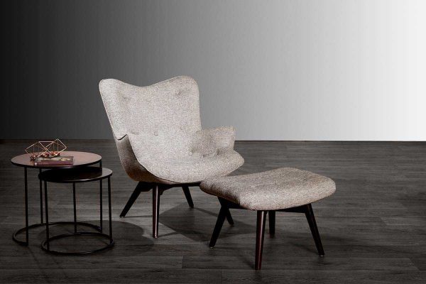 El sillón Vintage es un cómodo asiento con botones decorativos. Puede combinarse con un hocker.