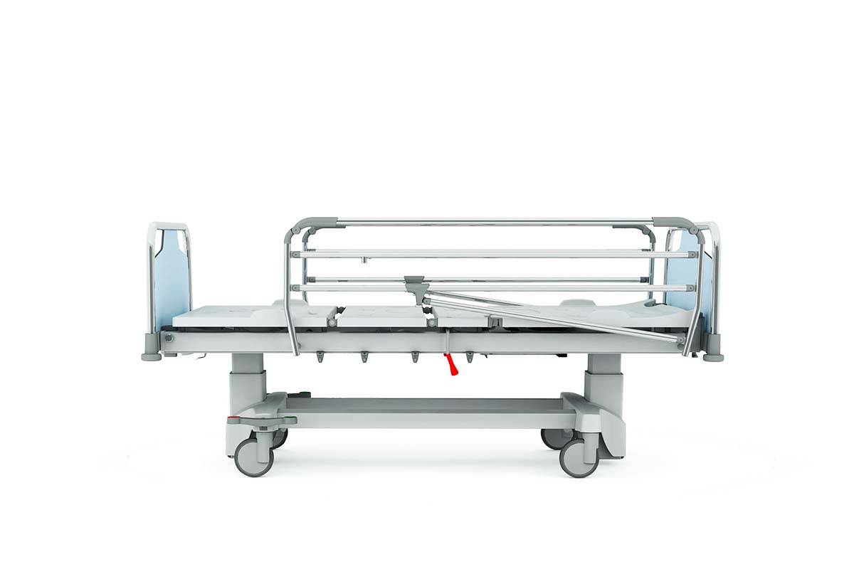 La cama hospitalaria con el diseño más contemporáneo del catálogo Armisen. Columnas telescópicas ocultas, vigas laterales de aluminio con pasacables integrado, 4 soportes deslizantes para accesorios y carril DIN opcional. Una cama hospitalaria moderna, limpia y funcional, pensada para hospitales que cuidan tanto la funcionalidad como la experiencia visual del paciente.