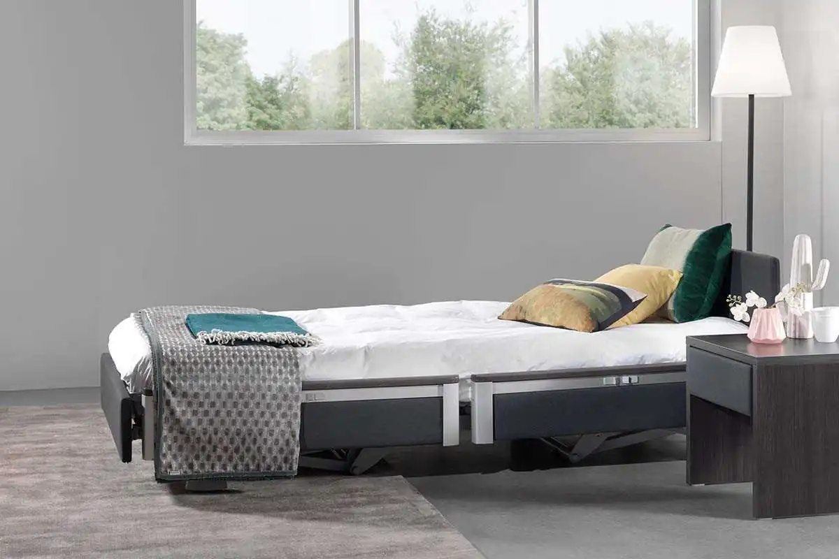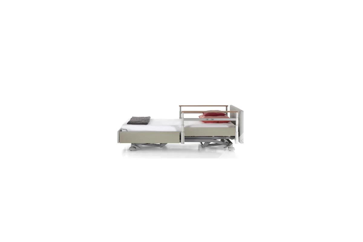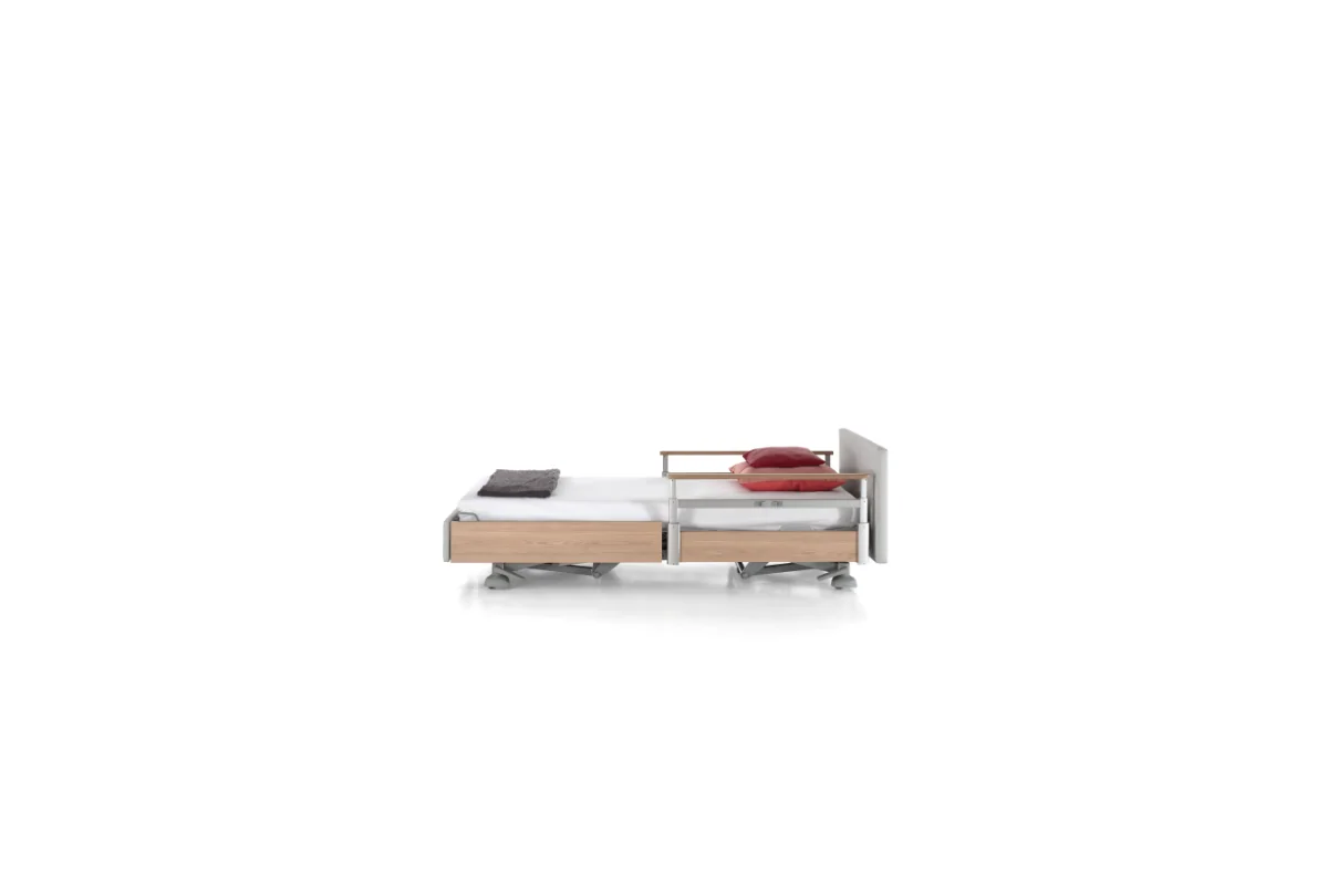 Puedes elegirla con o sin barandillas, según las necesidades del usuario. Sus barandillas laterales Twin garantizan seguridad y evitan caídas, al mismo tiempo que ofrecen flexibilidad al cuidador.