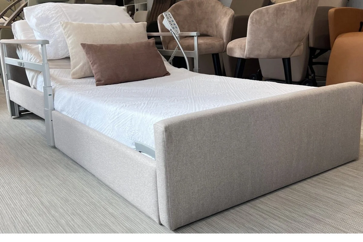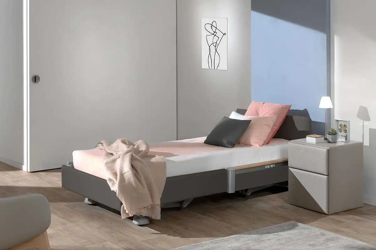 La Cama Lago Care es la elección perfecta para quienes buscan elegancia, comodidad y seguridad en el cuidado diario. Su diseño actual y hogareño se adapta a cualquier entorno, ya sea en casa, en una residencia o en un hospital, gracias a la variedad de acabados en madera, polipiel o tela, que aportan calidez y se integran con facilidad en tu espacio.
