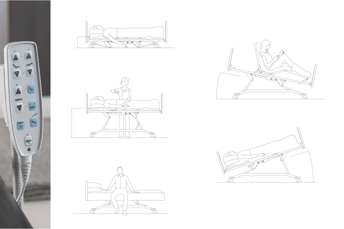 La caja de control inteligente OpenBus añade un nivel superior de asistencia. Registra datos de sensores y los transmite al personal de enfermería o cuidadores, ofreciendo un seguimiento más eficaz del paciente. Además, incorpora un sistema de bloqueo selectivo mediante llave magnética, que permite controlar las posiciones de la cama de forma segura y sencilla.
