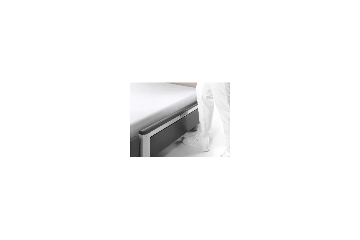 Su solidez en todo el perímetro de elevación, lla calidad de todos los materiales y el diseño de esquinas redondeadas añaden un extra de seguridad y confort. Las ruedas ocultas de 50 mm con pedal de freno facilitan la movilidad de la cama cuando sea necesario y la autonomía de paciente y eficiencia y cuidado del cuidador.