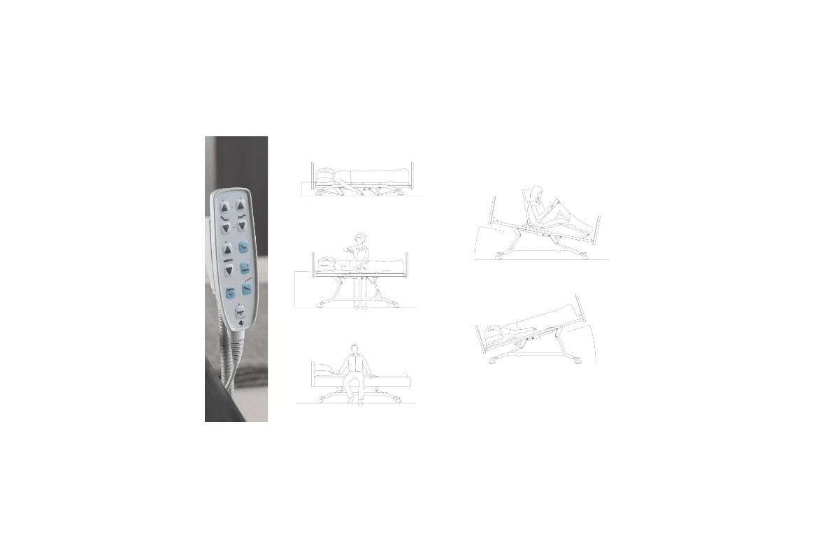 - La manipulación eléctrica de las secciones de la plataforma del colchón está equipada con una función de seguridad de sujeción.