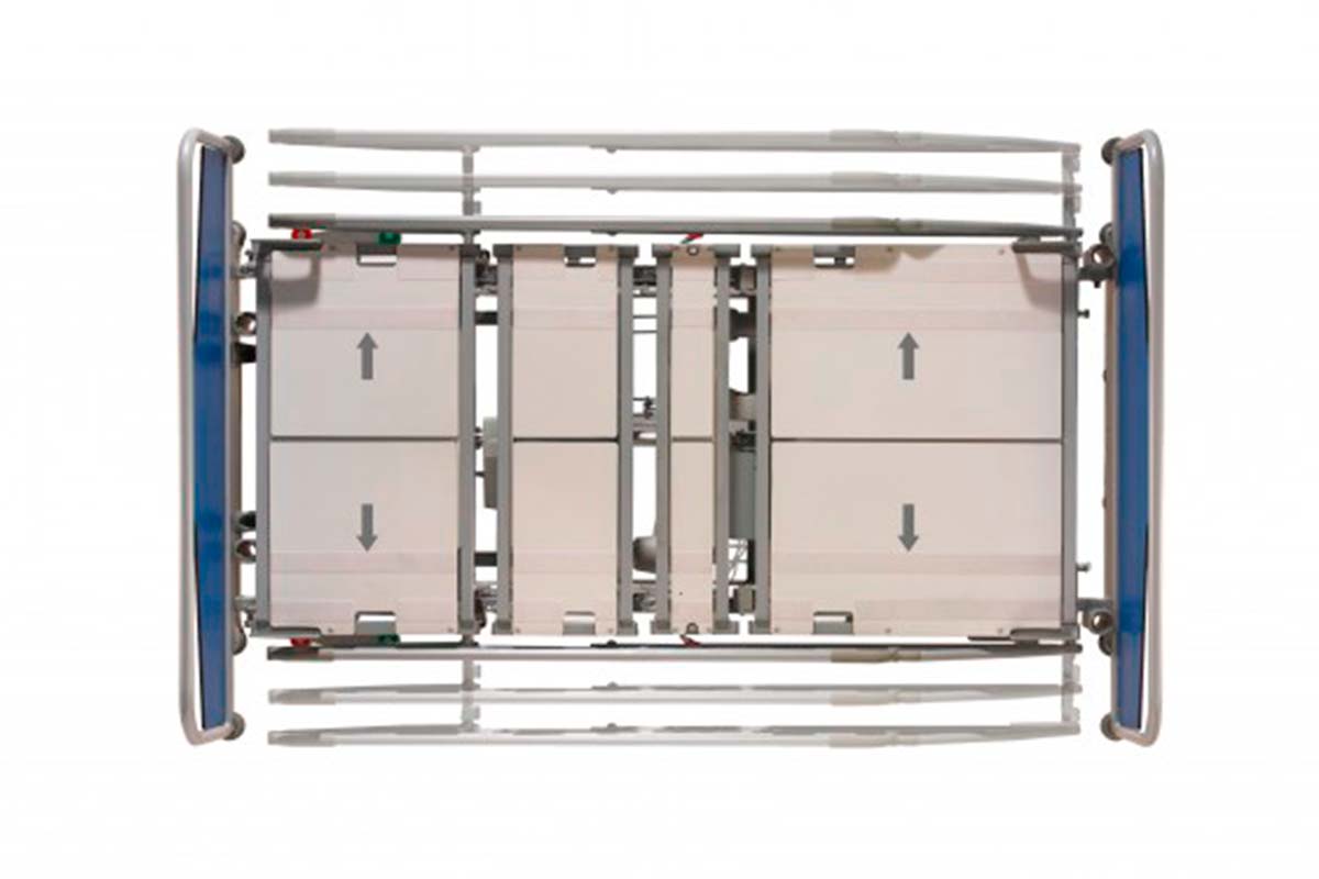 2. Anchura del somier regulable entre 91, 111 y 131 cm — el paciente no tiene que adaptarse a la cama; la cama se adapta al paciente.