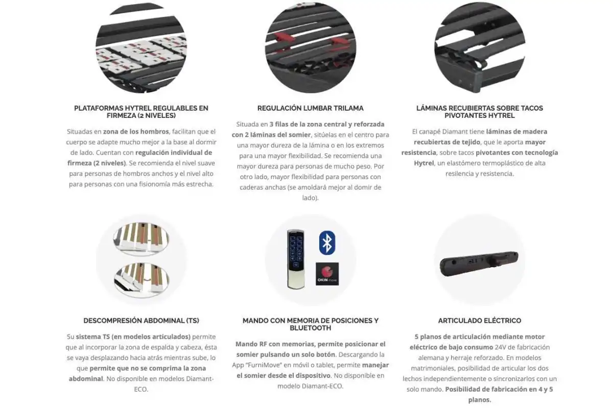 Mando RF | Tacos SBS | Regulación lumbar bilama | Lecho multiláminas