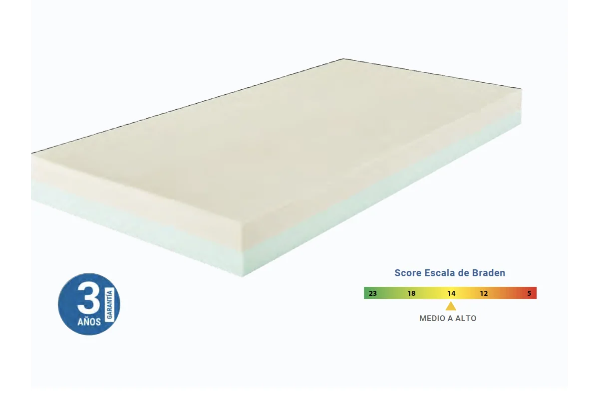 Capa superior de espuma viscoelástica ≥ 85 Kg/m3 para aumentar la superficie de contacto con la piel.