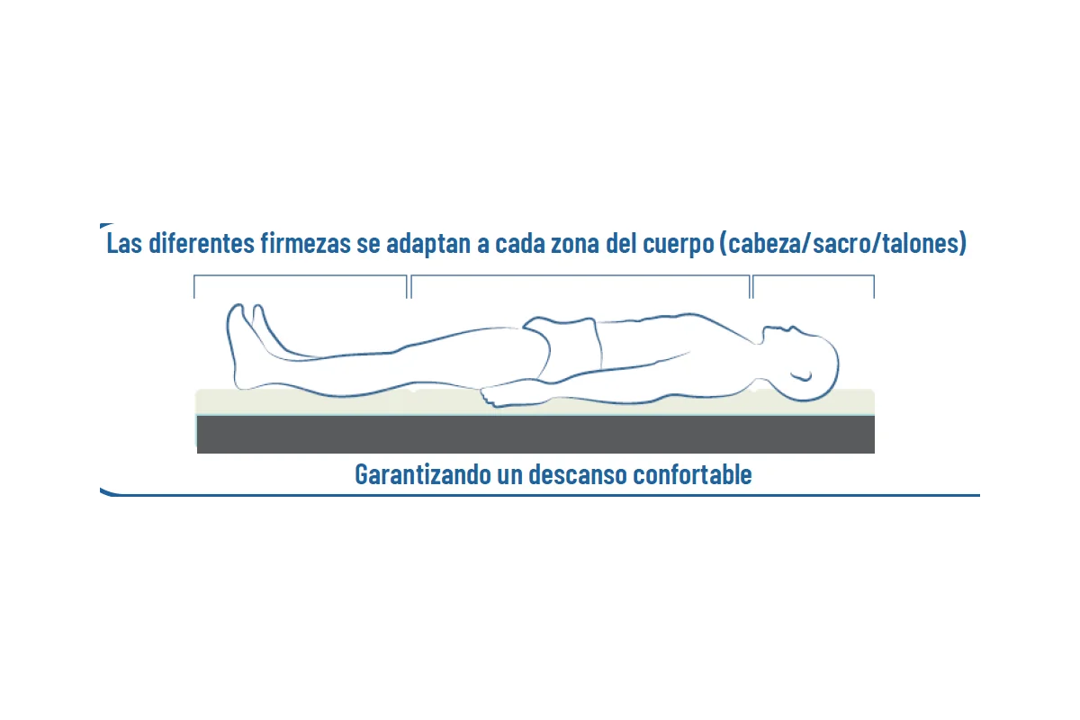 - Funcionalidad: disminución de los valores de presión por diferentes firmezas adaptadas a cada zona del cuerpo.