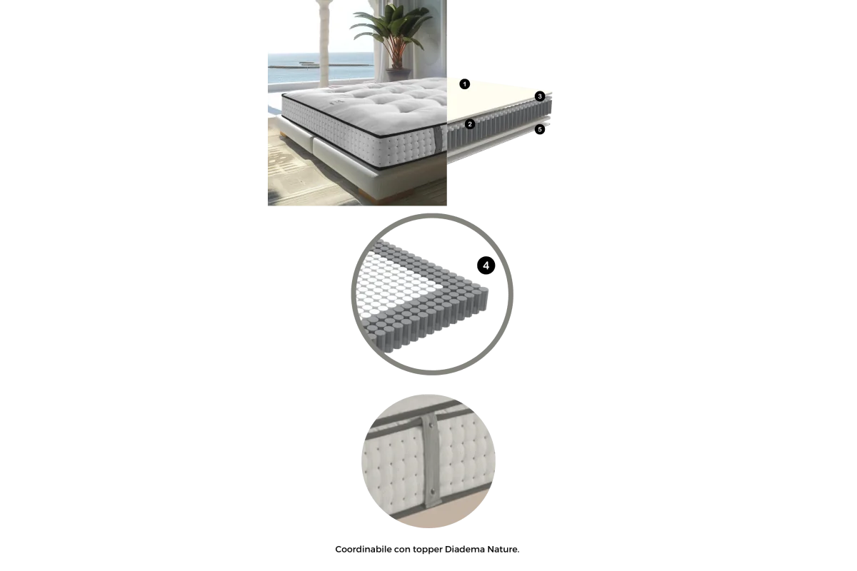 7 zonas de apoyo diferenciadas, para ofrecer una postura adecuada y una acogida multidiferenciada, que se adapta perfectamente a las diferentes necesidades posturales.