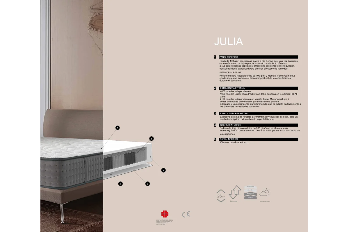 2100 muelles independientes en la versión Super MicroPocket con 7 zonas de apoyo diferenciadas, para ofrecer una postura adecuada y una acogida multidiferenciada, que se adapta perfectamente a las diferentes necesidades posturales.