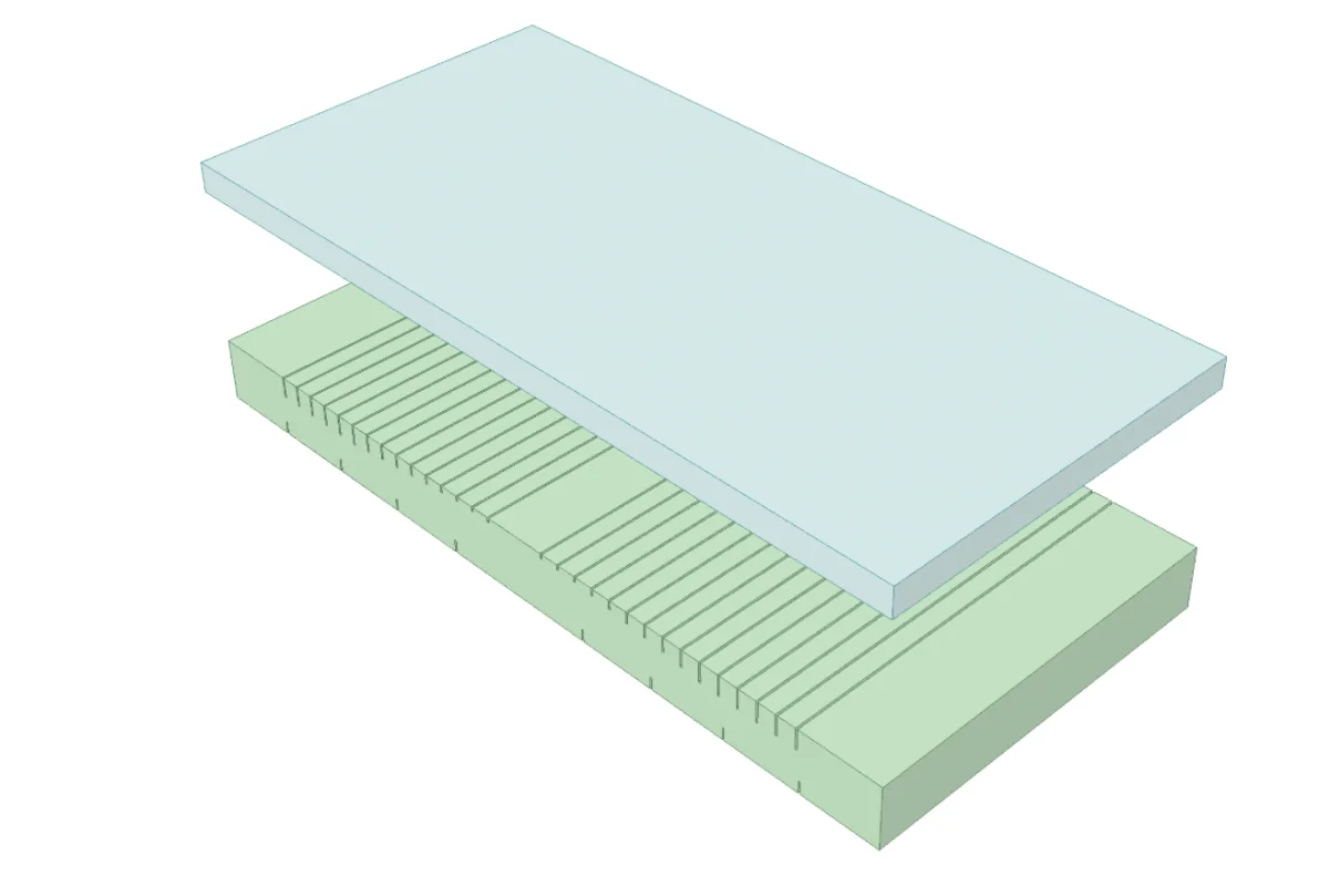 5 cm de viscoelástica atérmica (50 kg/m³): termoestable y extra transpirable.