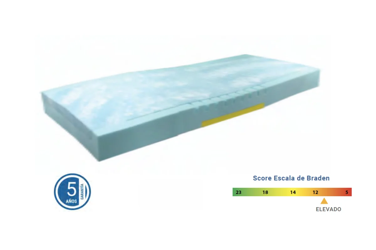 Colchón antiescaras UNIMAT con inserto HR en zona sacra, ideal para pacientes con riesgo alto a muy alto de UPP. Reversible, estable y seguro, facilita transferencias y mejora la prevención y tratamiento de úlceras grado 1-2 en pacientes encamados más de 15 horas al día.