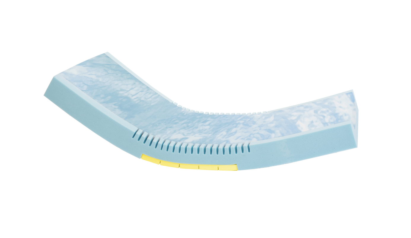 Capa superior de espuma de poliuretano de alta elasticidad HE 40 kg/m3.