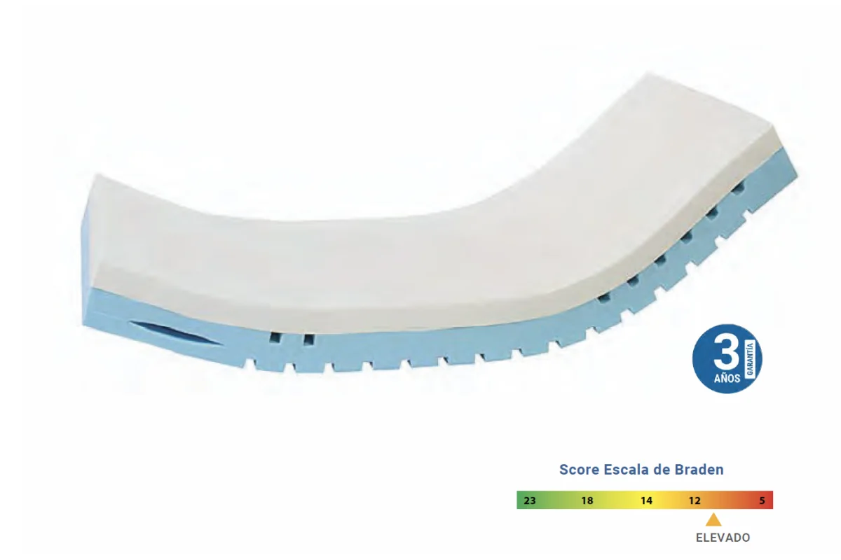 Capa superior: Espuma viscoelástica (densidad ≥ 75 kg/m³).