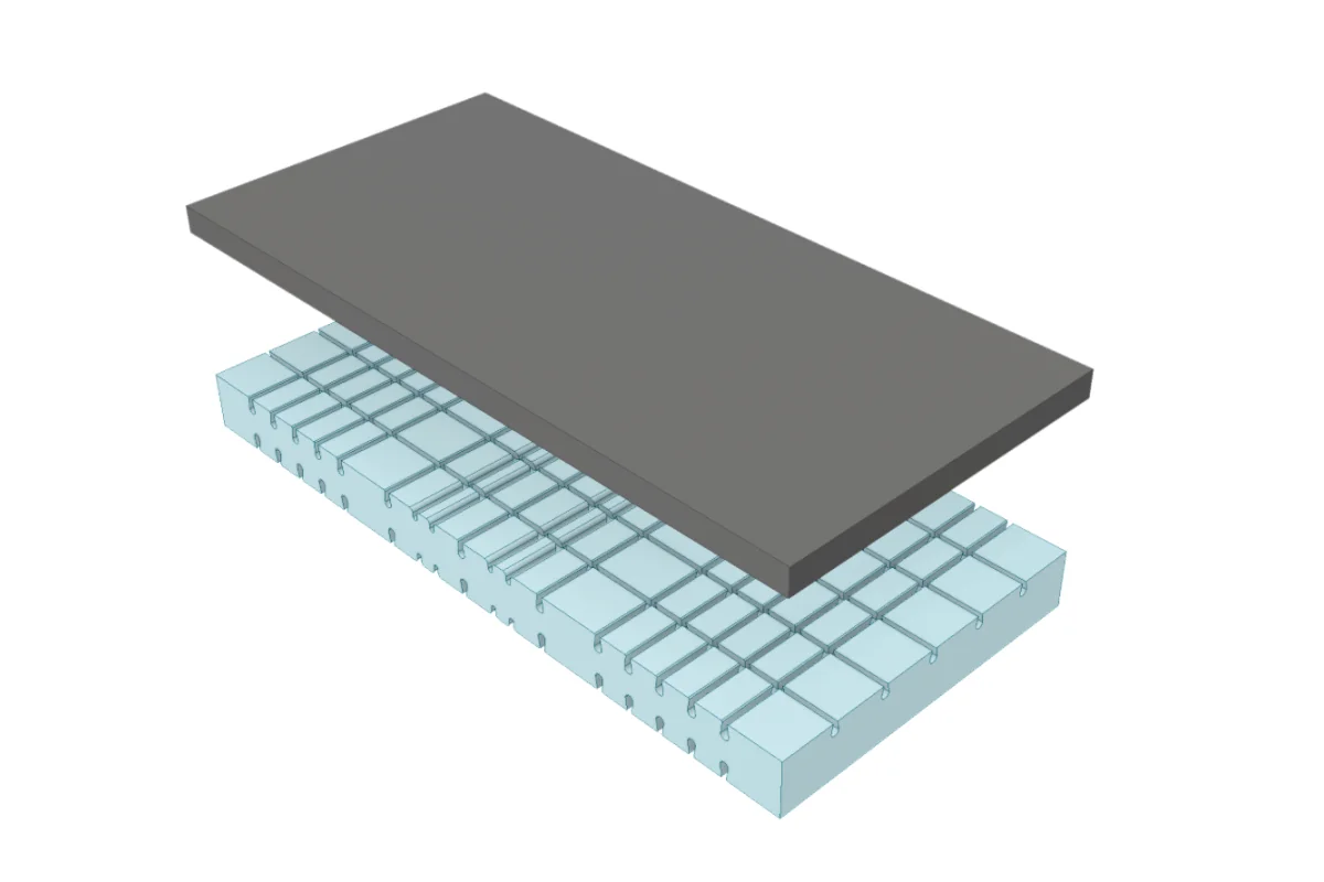 7 cm de viscoelástica con grafeno (60 kg/m³) para efecto memoria y disipación térmica.