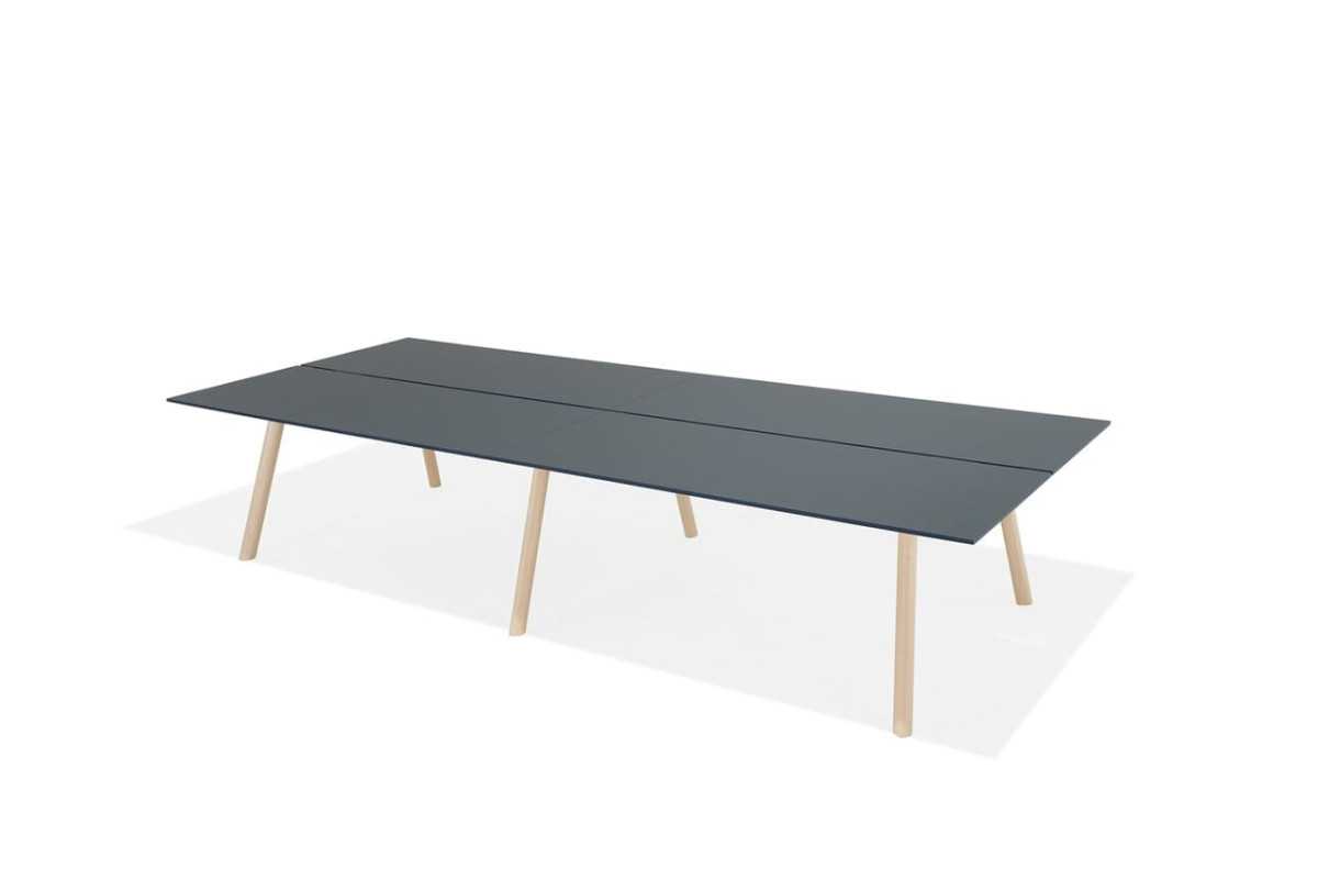 Mesa Creva: una extraordinaria serie de mesas que consigue trasladar la estética de diseño del mobiliario doméstico a los entornos de oficina. Su lenguaje de diseño minimalista se caracteriza por formas redondeadas y proporciones equilibradas. La materialidad de la madera natural refuerza este aura. La construcción de la mesa incorpora multitud de ingeniosas características. La subestructura sin raíles ofrece mucho espacio para las piernas. Las patas de acero con vigas de soporte de aluminio combinadas con las barras laterales de acero garantizan la mejor estabilidad posible. La articulación central del tablero puede alojar diversos módulos de potencia, paneles de protección visual y bandejas que se pueden colocar libremente. La mesa Creva destaca por su versatilidad: ideal tanto para puestos de trabajo individuales como para configuraciones de conferencia a gran escala, sin olvidar las mesas altas. Orientada a una gran variedad de entornos, desde oficinas a restaurantes y cafeterías para el personal, desde salas de recreo a zonas de espera, desde puntos de reunión a zonas de descanso.