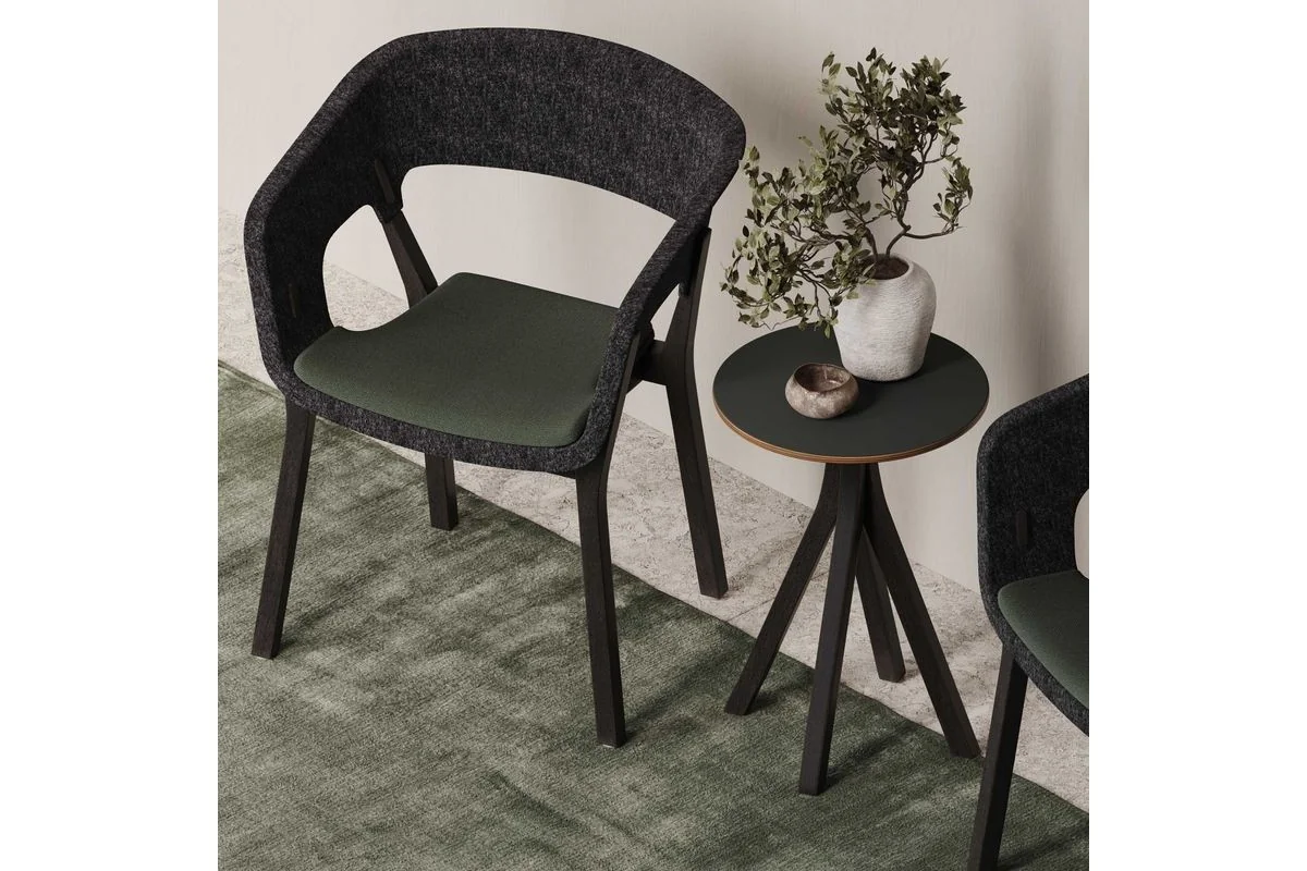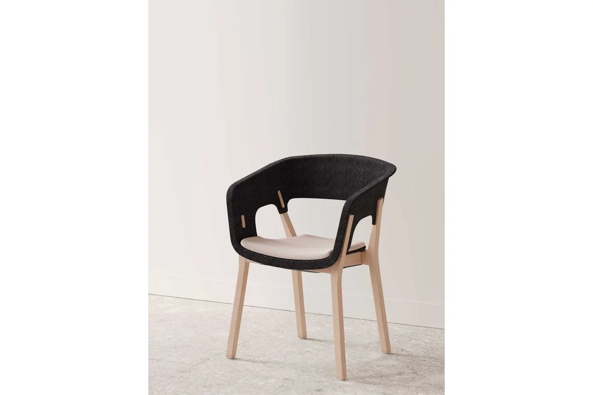 Líneas rectas con curvas delicadas. A primera vista, Njord es excepcional. La madera material está trabajada en un armazón inusualmente esbelto. La carcasa del asiento, totalmente de fieltro de poliéster antracita, seduce por su diseño orgánico y el suave tacto de su materialidad. Cuatro premios de diseño reconocidos internacionalmente son la prueba convincente de que la silla Njord destaca por encima de los demás.