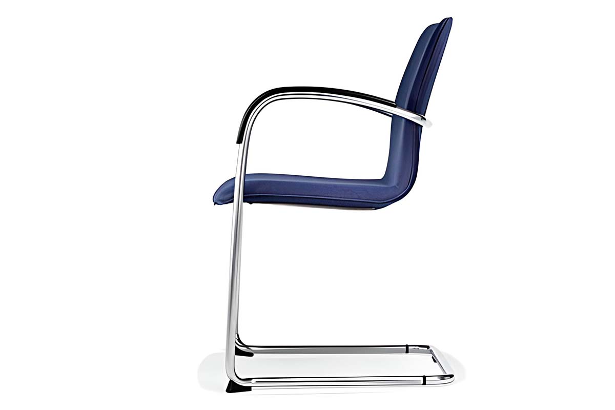 Una silla ligera con tapicería delgada o ligeramente más gruesa. Esta serie de alta calidad seduce por su elegancia. Gracias a los reposabrazos abiertos, estas sillas de diseño pueden apilarse unas sobre otras. Estos asientos son versátiles en diversos interiores.