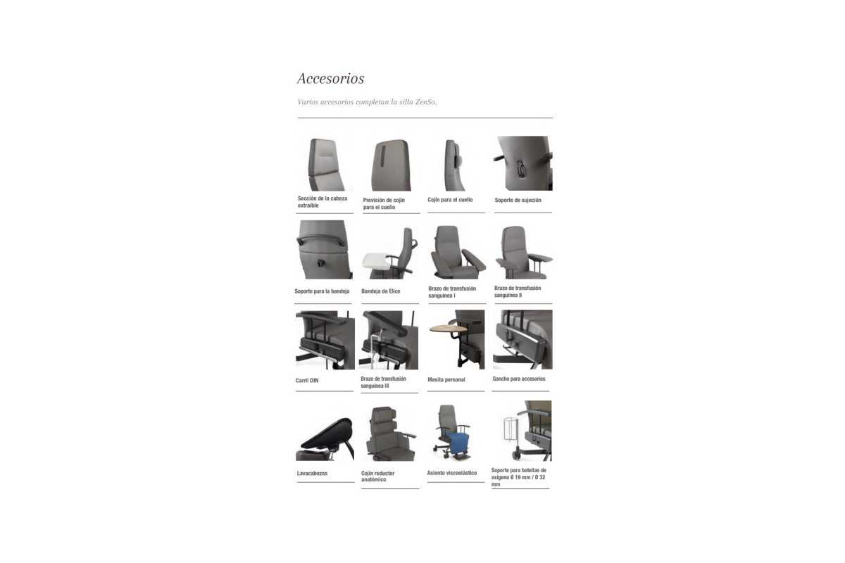 - El sillón relax se puede componer forma que desee. Varios accesorios completan el sillón, como un reposacabezas extraíble, una barra de suero, una bandeja, cojín cervical.