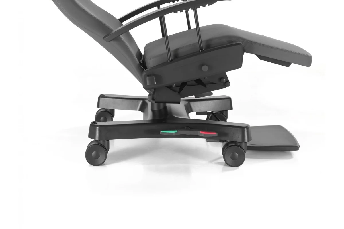 Dos actuadores se encargan de que el respaldo, el asiento y el reposapiernas se inclinen hasta una posición de gravedad cero (*). El respaldo y el asiento son ajustables individualmente. La silla puede accionarse mediante un Mando o un mando integrado (cuando se opta por laterales tapizados).