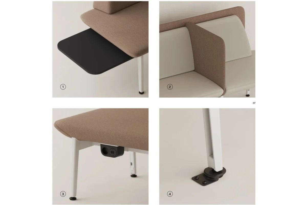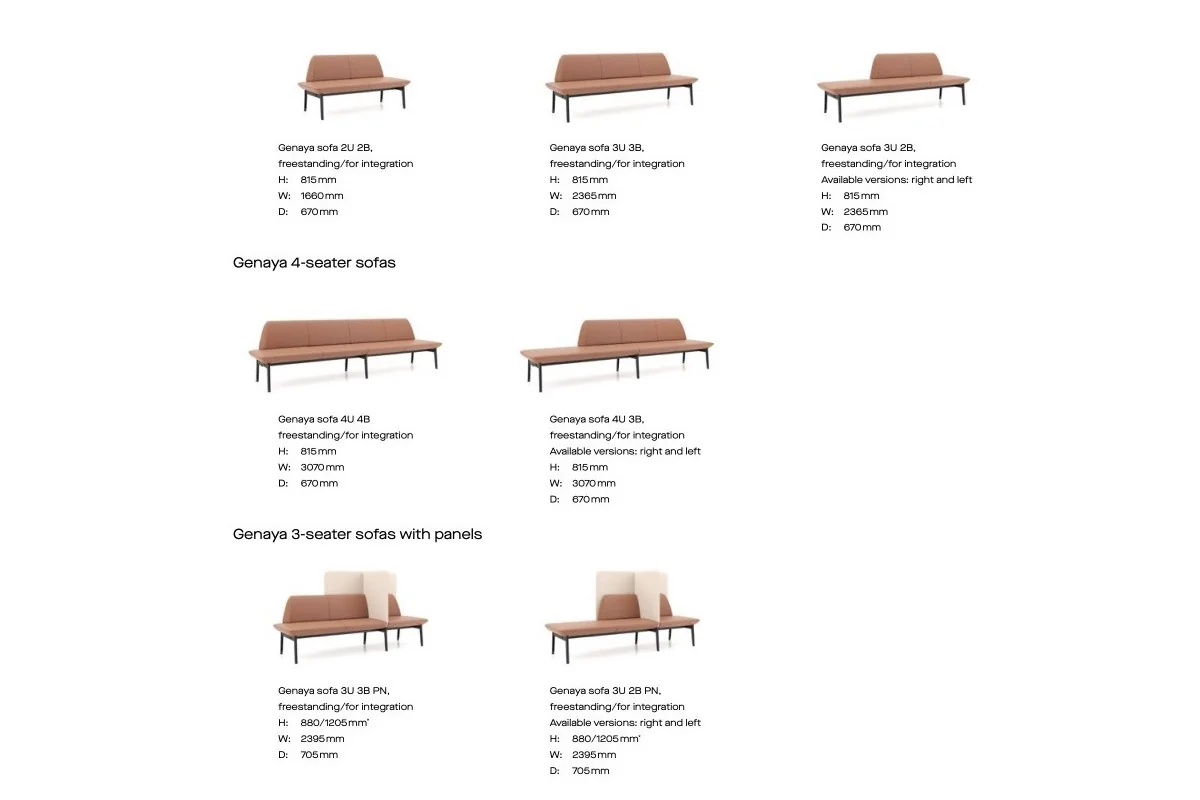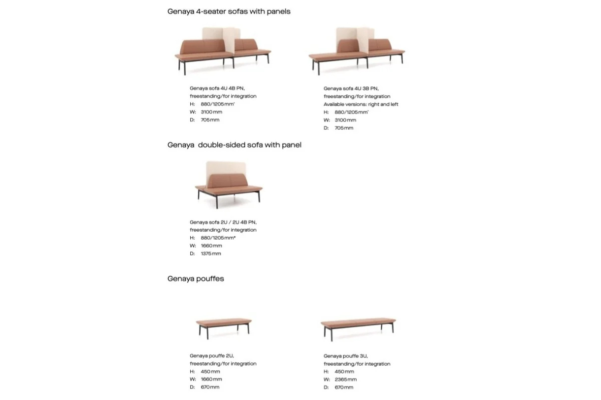 Genaya es más que un asiento cómodo. Su modularidad le permite responder a las diversas necesidades de los usuarios y se integra armoniosamente en cualquier espacio. Es el epítome de la comodidad y la flexibilidad en el diseño de interiores.