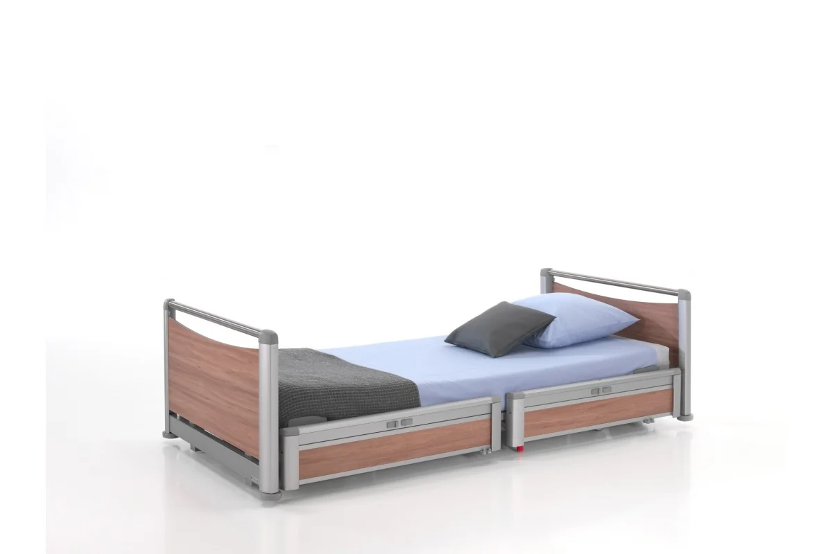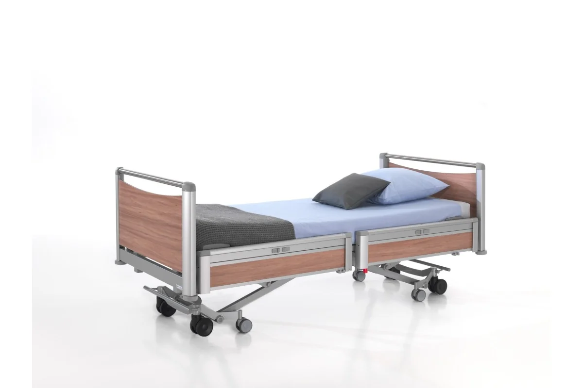 En la cama Terra Hospital, la seguridad y la comodidad van de la mano. Una posición ultra baja de 18 cm limita el riesgo de caídas y una altura de trabajo ergonómica de 83 cm garantiza una asistencia eficiente.
